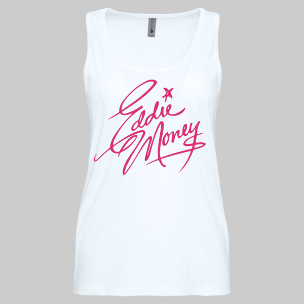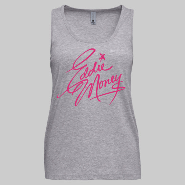 This Official Eddie Money Legacy Signature with Photo Ladies Tank Top is printed using cutting-edge direct-to-garment technology on a high-quality 100% Cotton garment.